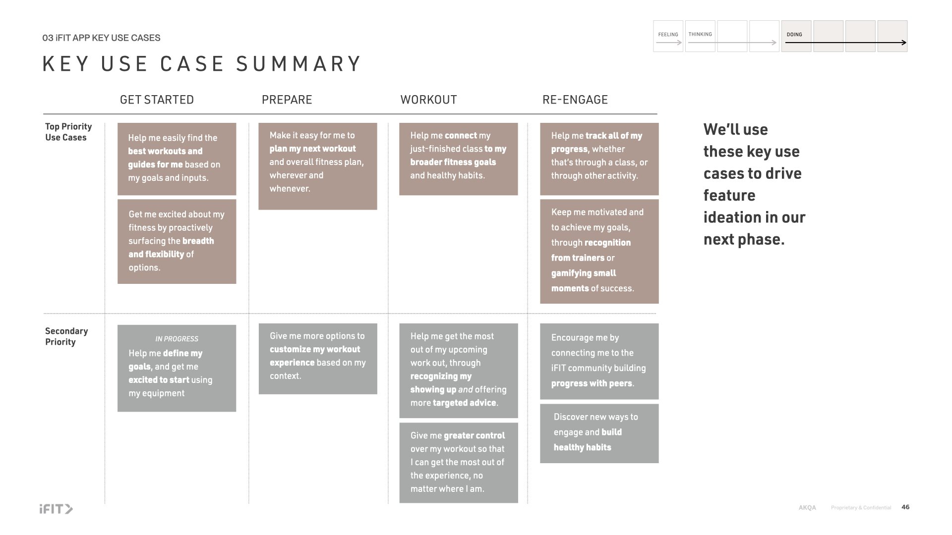 Execution of this strategy and updates to the iFIT app based on the core use cases identified are still in progress.